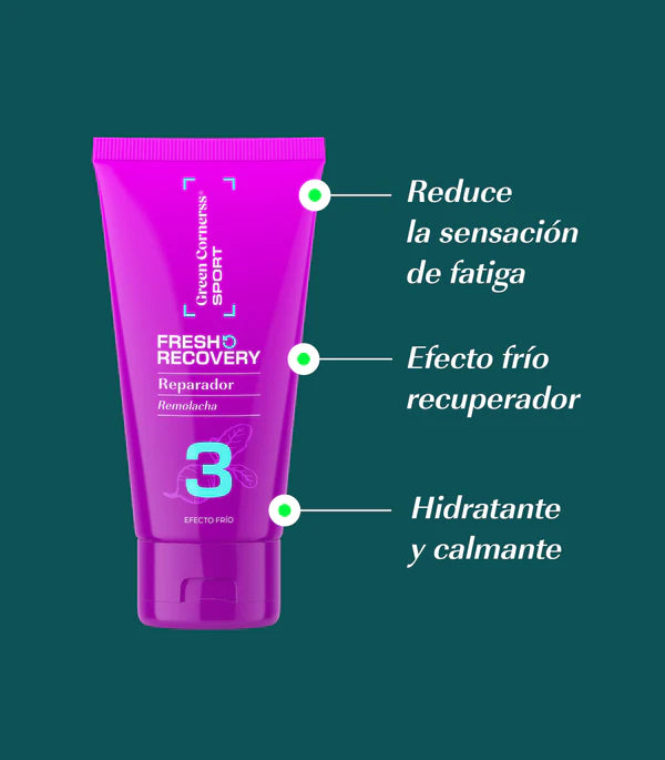 Enriquecido con extracto de remolacha y Magnesio PCA, que ofrecen propiedades hidratantes, revitalizantes y ayudan en la recuperación muscular.