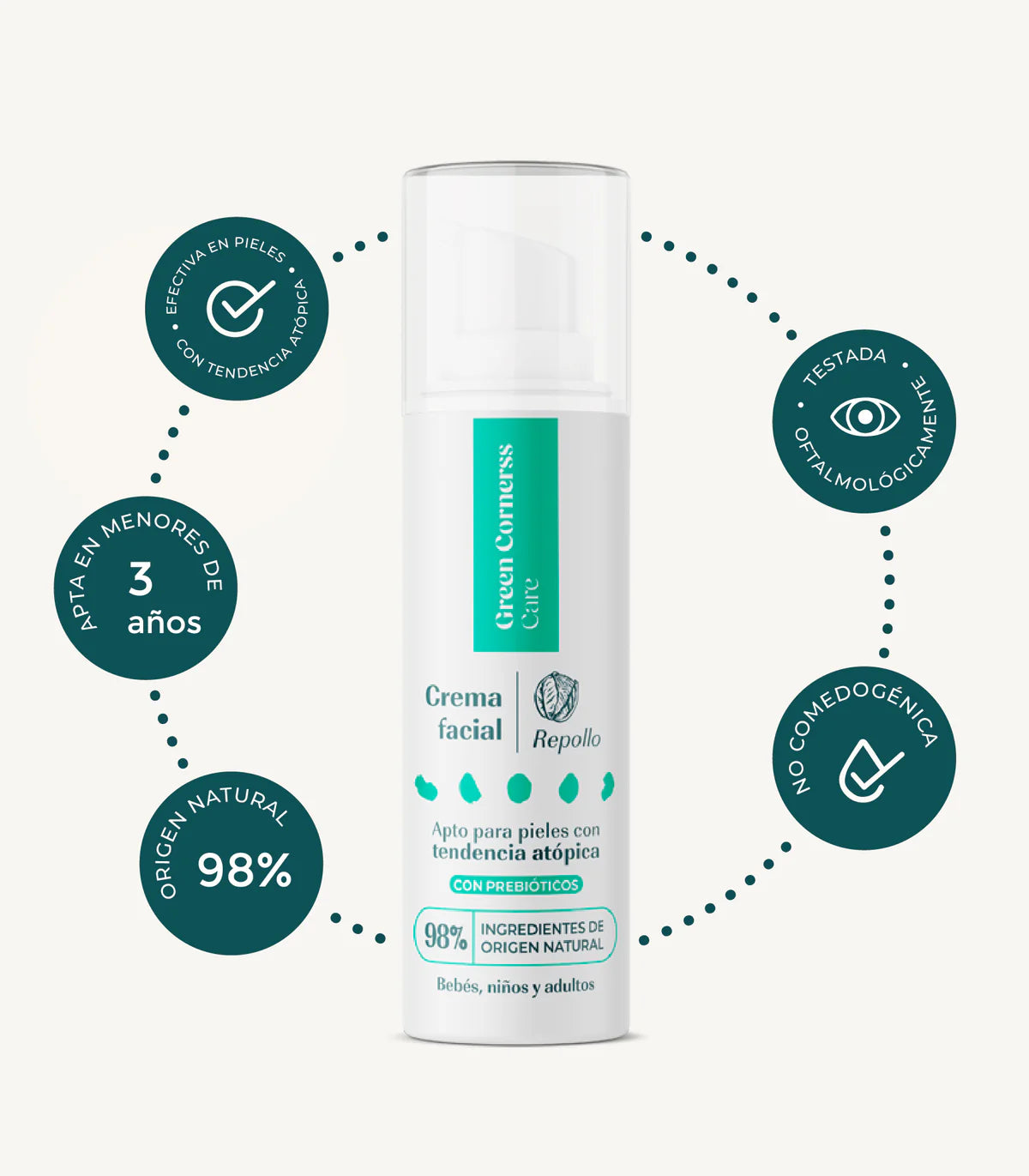 A facial cream that hydrates and strengthens the skin barrier in babies, children, and adults. Contains cabbage extract, an innovative ingredient with antioxidant, soothing, and healing properties.